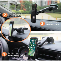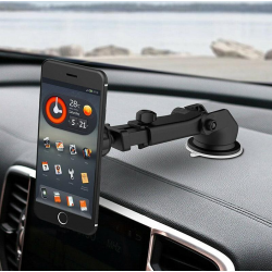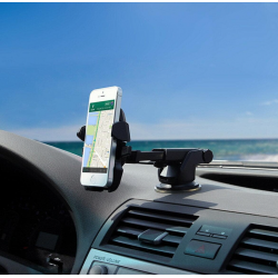 Universalhalterung, mit der Sie Ihr Telefon sicher und einfach am Armaturenbrett oder an der Windschutzscheibe befestigen können. Durch seine kompakte Größe passt es perfekt in jedes Autosystem. Ein hochwertiger Saugnapf sorgt dafür, dass diese Autohalterung auf den meisten glatten Oberflächen fest haftet.