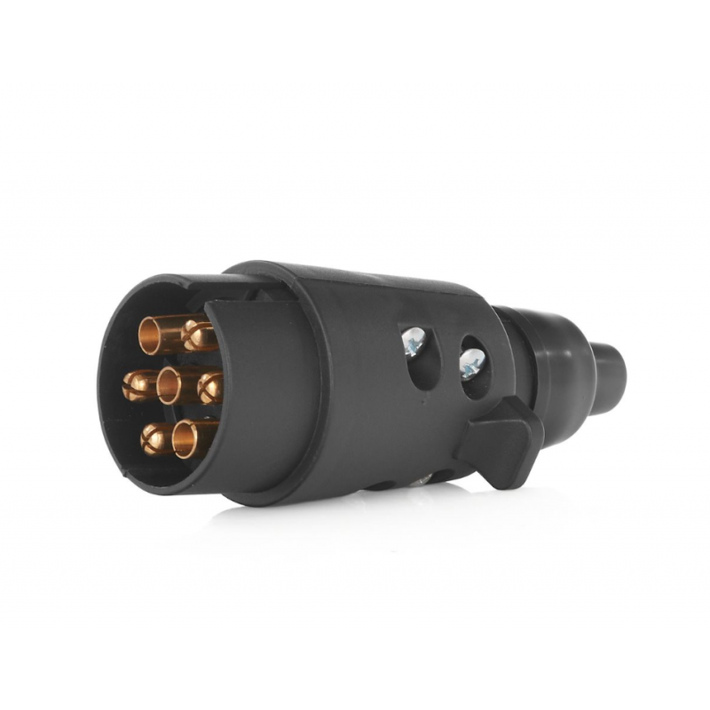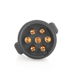 - 7-poliger Stecker: Bietet eine vollständige Verbindung zwischen Auto und Anhänger. Jeder Pin ist beschriftet und für bestimmte Funktionen wie Beleuchtung (Blinker, Bremsen, Warnblinkanlage usw.) verantwortlich.