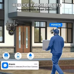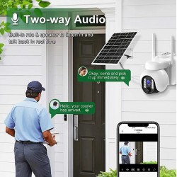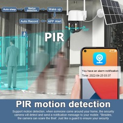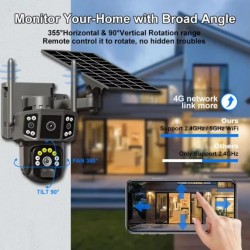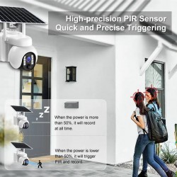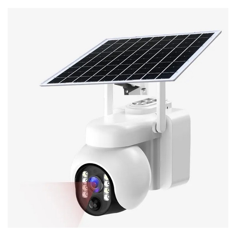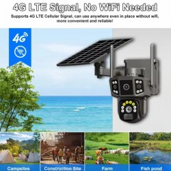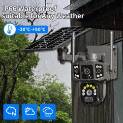 Diese 4K 8MP Solarkamera mit 12000mAh Akku und IP66-Wasserdichtigkeit bietet eine hervorragende Sicherheitslösung. Sie verfügt über Auto-Tracking, Personenerkennung, Zwei-Wege-Audio und Nachtsicht mit 6 IR-LEDs und 4 weißen LEDs. Die Kamera unterstützt 4G-SIM-Karten, 128 GB Speicherkarten und lässt sich über die V380 PRO App fernsteuern. Darüber hinaus verfügt sie über eine 4-fach-Zoomfunktion und die Möglichkeit, den Erfassungsbereich und die Empfindlichkeit zu konfigurieren.