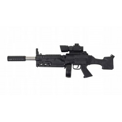 Die Airsoft-Maschinenpistole MKA ist ein Spielzeuggewehr, das 6-mm-Plastikkugeln verschießt. Airsoft-Waffen sind eine beliebte Freizeitbeschäftigung für Kinder und Jugendliche.