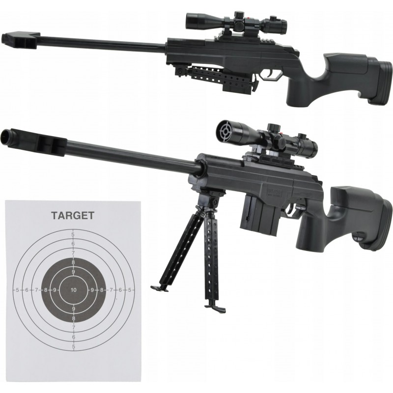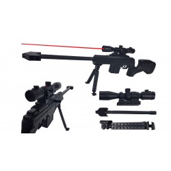 Airsoft-Scharfschützengewehr – eine Spielzeugpistole mit Laserzielgerät und Taschenlampe. Verschießt 6-mm-Plastikkugeln.