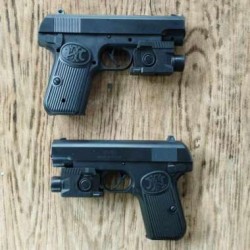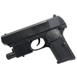 Airsoft-Pistole mit Laserzielgerät, die 6-mm-Plastikkugeln verschießt.