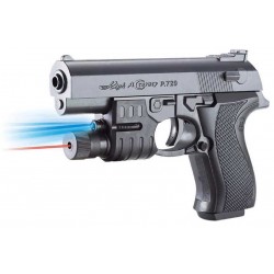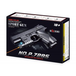 Beinhaltet: Pistole, Magazin, Laserzielgerät + blaue Taschenlampe.