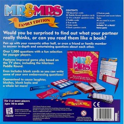 Wären Sie überrascht, die wahren Gedanken Ihres Partners zu erfahren, oder können Sie Ihre Familie wie ein offenes Buch lesen? Finden Sie es heraus mit diesem Spiel, das auf der beliebten TV-Show „All Star Mr & Mrs“ mit Phillip Schofield basiert. Spielen Sie mit Ihrem Partner, einem Freund oder einem Familienmitglied zusammen und beantworten Sie detaillierte und interessante Fragen übereinander. Die „Mr & Mrs Family Edition“ bietet Fragen für Paare, Familien und sogar für Kinder ab 10 Jahren. Mit über 1000 Fragen, die Ihnen vielleicht noch unbekannte Seiten Ihrer Liebsten offenbaren, ist die „Mr & Mrs Family Edition“ das perfekte Spiel. Das Spiel beinhaltet eine erweiterte Paddleboard-Runde, bei der die Spieler mit dem Rücken zueinander sitzen oder stehen und Fragen übereinander beantworten, wie zum Beispiel „Wer beschwert sich am meisten?“ oder „Wer ist am großzügigsten?“. Außerdem gibt es ein „Wahrheit oder Lüge“-Spiel, bei dem Sie Punkte sammeln können, wenn Sie auf der gleichen Wellenlänge sind, selbst wenn Sie beide lügen. Es sind sogar leere Karten enthalten, auf denen Sie Ihre eigenen, etwas peinlichen Fragen schreiben können. Lachen, Erröten, ratlose Blicke und vieles mehr sind garantiert!