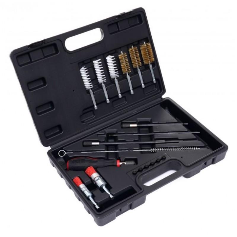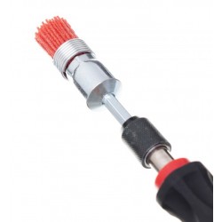 Professionelles 14-teiliges Bürstenset zum Entfernen von Ablagerungen und Korrosion an Düsensitzen vor dem Wiedereinbau. Das Produkt ermöglicht die Anpassung der Bürstenhärte an die zu reinigende Oberfläche.