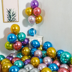 Metallic-Ballons, auch Glanz- oder Chromballons genannt, zeichnen sich durch ihren Glanz und ihre Reflexion aus, wodurch sie noch festlicher wirken. Sie passen gut zu anderen Ballons gleicher oder anderer Farbe.
