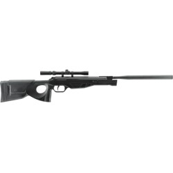 Luftgewehr mit zerbrechlichem Lauf und Federkolben, mit daumenlochförmigem Gehäuse aus Polymer, ähnlich einem Scharfschützengewehr. Komplett mit 3-7 x 20 optischem Visier.