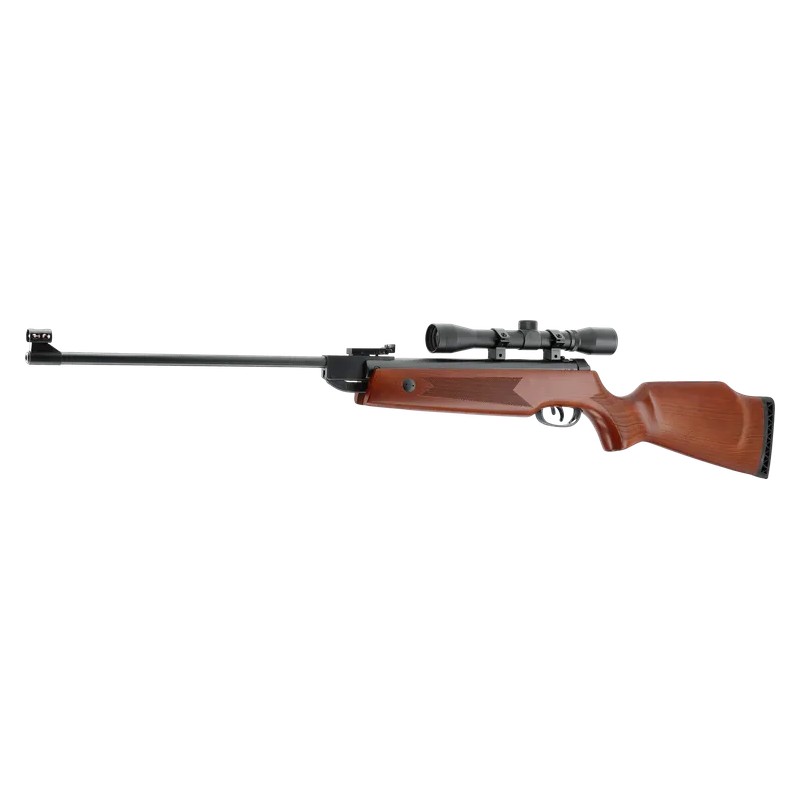 Ein gut geschnitzter, stumpfer Kolben mit Schachbrettmuster und einer belüfteten Gummikappe. Die automatische Sicherung ist praktischerweise im Abzugsbügel untergebracht. Erfahrene Benutzer werden auch das einstellbare Abzugsspiel zu schätzen wissen. Mit einem faseroptischen Mikrometervisier oder einem optischen 4 x 32-Visier wird jeder Schuss zum Volltreffer.