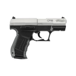 Der Walther CP99 ist einfach authentisch. Die vielen Varianten werden von Polizeibehörden auf der ganzen Welt eingesetzt und sind bei Sportschützen und Sammlern sehr beliebt. Diese CO₂-Variante sieht genauso aus wie das Original und verfügt über die gleichen technischen Merkmale: Auslösehebel, beidhändiger Magazinauslöser und austauschbare Schaftkappe. Innovative Details, darunter ein Schnellspannsystem für schnelles Laden und schnellen Kartuschenwechsel, machen die CO₂-Version zum idealen Nachbau. Es verfügt über alle Eigenschaften des Originals. Weil es authentisch ist. Mit 8-Schuss-Rotationsmagazin.