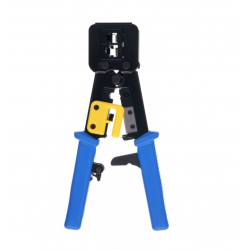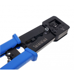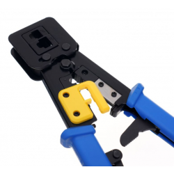 Das Gerät ist für RJ45-Stecker (8-polig) ausgelegt. Mit diesem Werkzeug können Sie Telefonkabel problemlos crimpen, schneiden und abisolieren.