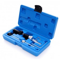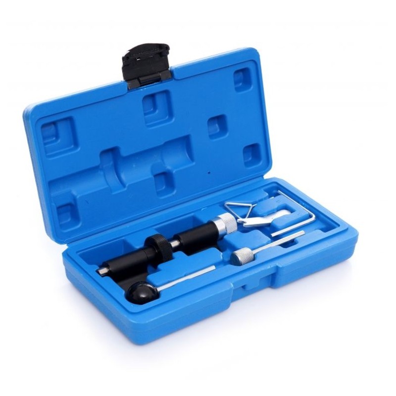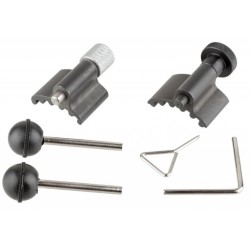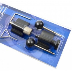 Professionelles Zahnrad-Arretierwerkzeug. Mit diesem Satz können Sie die Zahnräder beim Zahnriemenwechsel in Arbeitsposition arretieren. Die spezielle Form der Arretierungen ermöglicht eine präzise Einstellung der Zündzeitpunkte. Die Arretierungen fixieren den Steuermechanismus, die Kurbelwelle und die Riemenspannrolle.