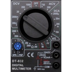 Digitales AC/DC Spannungsmessgerät Messung von: Gleichspannung (DC) und Wechselspannung (AC) Stromstärke (Strom) konstant (DC) Widerstand von Transistoren hFE Diodengleichspannungsmessung Durchgangsprüfung - akustisch + optisch Polaritätsanzeige Batterie im Lieferumfang enthalten Messleitungssatz im Lieferumfang enthalten