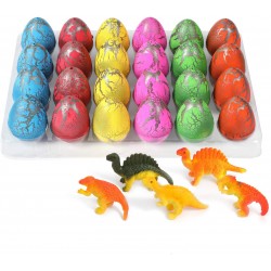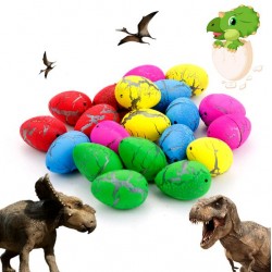 Dinosaurier-Eier wachsen im Wasser und schlüpfen. Werfen Sie sie einfach in Wasser (> 2 °C), lassen Sie sie über Nacht dort und sie „schlüpfen“ in etwa 12 Stunden. Wenn sich der Mini-Dinosaurier ausdehnt, drückt er den Panzer nach außen, bis dieser zu reißen beginnt. Diese Dinosaurierfiguren wachsen in 1–2 Tagen.