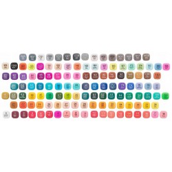 Das Touch Yuze Set enthält 60 Farbmarker. Jeder Marker hat zwei Spitzen: eine breite (für ca. 3–6 mm Strichstärke) und eine dünne (für ca. 1–2 mm Strichstärke). Die Marker sind aus ungiftigen Materialien gefertigt und in einem praktischen Etui mit Tragegriff verpackt. Die hochwertige Tinte, die sich gut mischen lässt und schnell trocknet, sorgt für professionelle und hochwertige Zeichnungen. Dank der großen Farbauswahl lassen sich interessante Farbverläufe und neue Schattierungen mit Farbe und Schatten erzeugen.