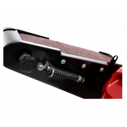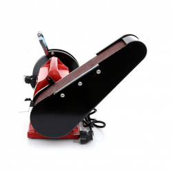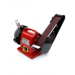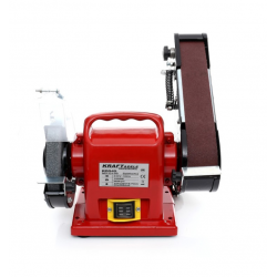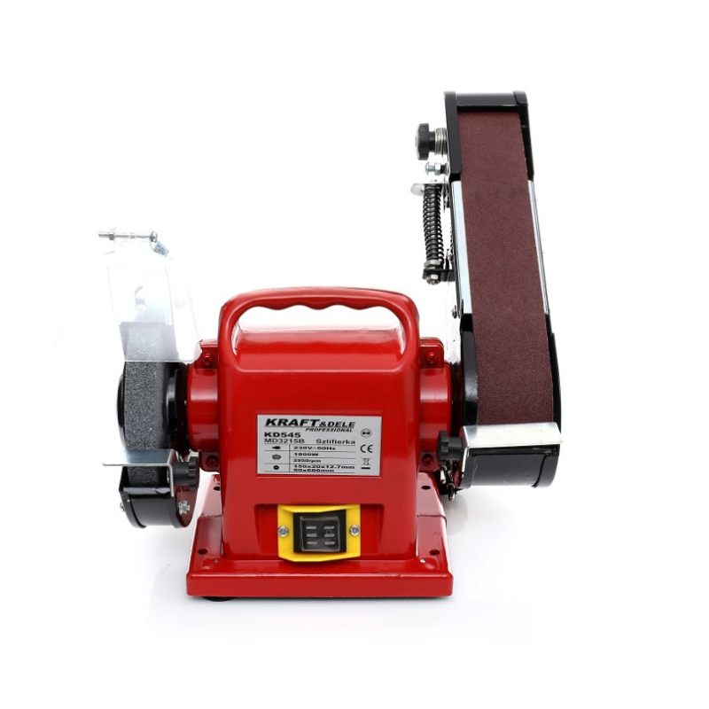 Der Schleifer ist vielseitig einsetzbar, unter anderem weil er mit einer Schleifscheibe und einem Schleifband arbeitet. Das Gerät erreicht eine Drehzahl von 2950 Umdrehungen pro Minute.