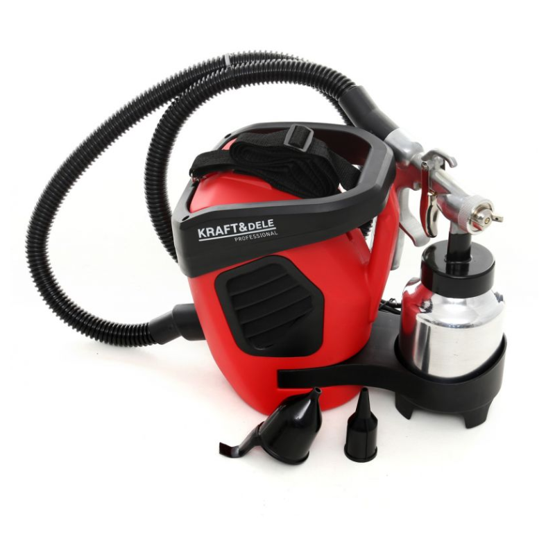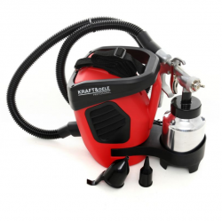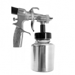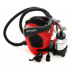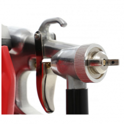 Mit einer professionellen Lackierpistole können Oberflächen mit wasserbasierten Lacken, Acrylgrundierungen, Spachtelmassen, Metallic- und Perlglanzfarben lackiert werden.