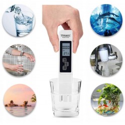 Mit dem Messgerät können Sie schnell und genau die Menge der in einer Flüssigkeit gelösten Feststoffpartikel bestimmen. Dadurch ist es möglich, den Verunreinigungszustand (ppm) des Wassers und damit seine Eignung zum Trinken anzuzeigen. Wasser mit einem Wert über 500 ppm ist nicht zum Verzehr geeignet! Je höher der Wasserhärteindex (ppm) ist, desto größer ist die Möglichkeit schädlicher Auswirkungen auf den menschlichen Körper.