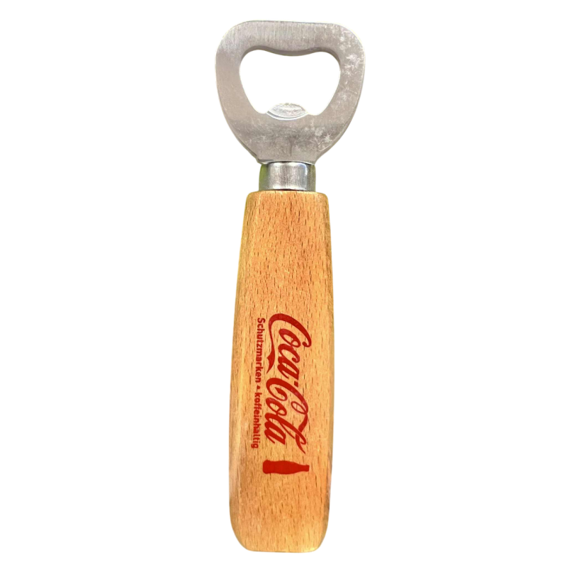 Flaschenöffner aus Metall mit Holzgriff, Coca-Cola