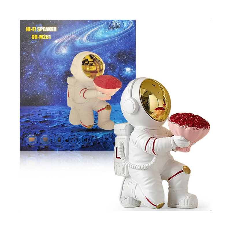 HI-FI-Lautsprecher / Säule / Radio - Astronaut mit Blumen