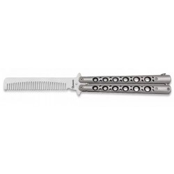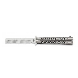 Ein Butterflymesser mit einem Kamm anstelle einer Klinge.