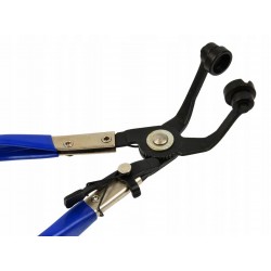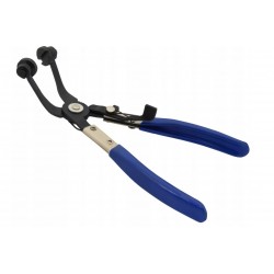 Zangen werden zum Zusammendrücken der in flexiblen Kraftstoff-, Öl- und Wasserschläuchen verwendeten Dehnungsbänder verwendet. Speziell gebogene Backen ermöglichen das Greifen des Bandes an schwer zugänglichen Stellen. Sie verfügen über einen 8-stufigen Mechanismus, der sie in der geschlossenen Position automatisch verriegelt.