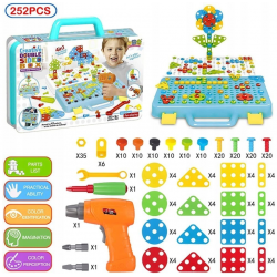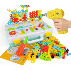 Ein umfangreiches, lehrreiches Bausteinset für kleine Bastelfans. Das Set besteht aus 252 Teilen und ist in einem praktischen Kunststoffkoffer verpackt.