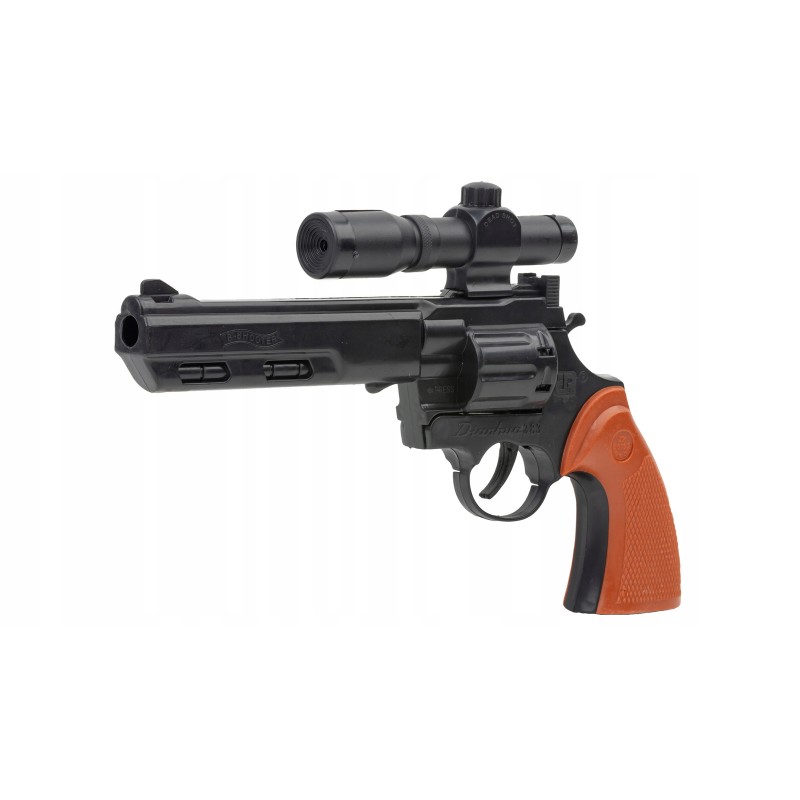 Eine Pistole im Revolver-Stil, die Schallkolben abfeuert