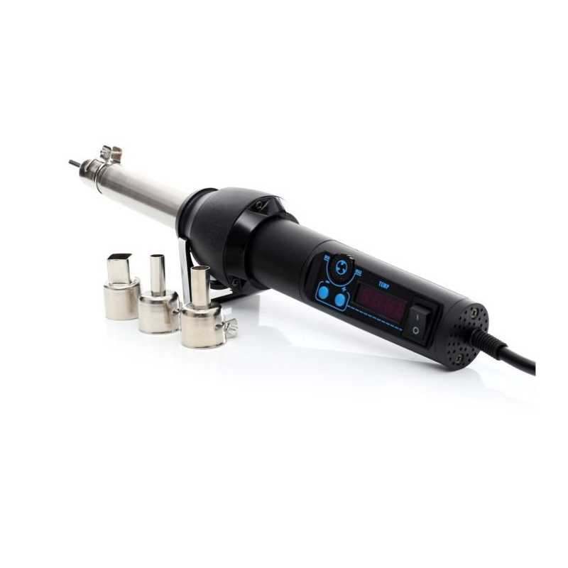 Universelles Werkzeug zum Löten von Kunststoffteilen und Markisen. Das Schweißgerät verfügt über eine Funktion zur Regulierung der Blaslufttemperatur. Sehr starke und langlebige Heizung, der Kern besteht aus Keramik.