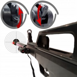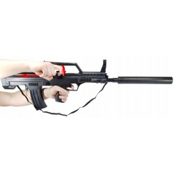 Militärisches Maschinengewehr aus der Luft – eine Spielzeugwaffe mit Laservisier. Schießt mit 6-mm-Kunststoffgeschossen.