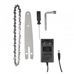 - 21-Volt-Akku-Holzbearbeitungskettensäge mit 2 Akkus im Set , mit der Sie alle Holzschneidearbeiten mit größter Leichtigkeit erledigen können.