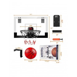 Dieser Mini-Basketballkorb ist ideal für Kinder ab 3 Jahren und Erwachsene, die sich zu Hause oder im Büro beim Basketballspielen entspannen möchten. Er ist robust, einfach aufzubauen und bietet interaktive Funktionen wie eine elektronische Punkteanzeige und Soundeffekte.