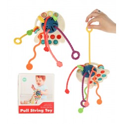 Dieses Spielzeug bietet vier Interaktionsmöglichkeiten: Man kann die farbigen Ringe bewegen, an den Silikonschnüren ziehen, den Ball zwischen den Löchern zusammendrücken und die Bälle selbst drücken. Die Silikonschnüre haben nicht nur unterschiedliche Farben, sondern auch verschiedene Oberflächenstrukturen. Beim Spielen zieht man sie von einer Seite zur anderen. Die Aufgabe mag einfach erscheinen, kann aber für ein Kind eine echte Herausforderung sein! Die farbigen Schnüre eignen sich auch hervorragend als Beißring! Dieses Spielzeug entspricht ganz der Montessori-Pädagogik, die besagt, dass gerade die einfachsten, aber funktionalen Spielzeuge die größte Förderung für die kindliche Entwicklung bieten. Beim Spielen erlernt das Kind viele nützliche Fähigkeiten.