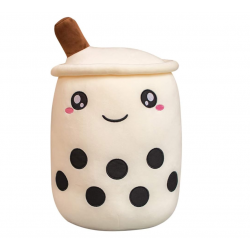 Niedliches Plüschtier/Kissen Boba Bubble Tea, weiß