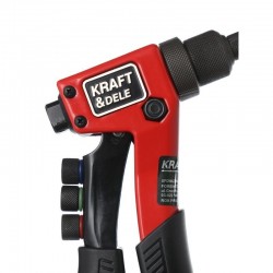 Handnietgerät, das 4 verschiedene Nietengrößen verarbeiten kann. Befestigung von Blechen und schweren Stoffen in Rohrleitungen, im Bauwesen und bei Karosseriereparaturarbeiten.