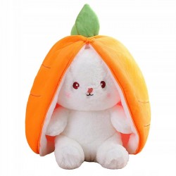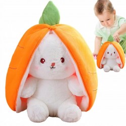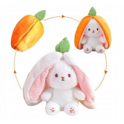 Kuscheln Sie sich an diesen Plüschhasen, der auf der einen Seite ein niedliches Karottenkissen und auf der anderen Seite einen süßen Hasen mit großen Ohren zeigt.