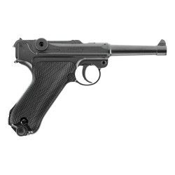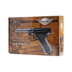 Legends P08 4,5 mm, 3,0 J – eine halbautomatische Pistole für Hobbyschützen. Die robuste Ganzmetallpistole ist handlich und dank ihrer hohen Energie ideal zum Plinking. Das herausnehmbare Magazin fasst 21 Stahlkugeln (4,5 mm). Die Sicherung ist wie beim Originalmodell verbaut.