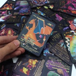 Limitiertes schwarzes Pokémon -Sammelkartenspiel. Karten und Verpackung bestehen aus hochwertigem Polymer-Kunststoff. Sie sind wasserfest und haltbarer als herkömmliche Karten. Die Karten sind um 180° biegbar.