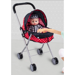Zeit für Spaziergänge an der frischen Luft! Ein verstellbarer Puppenwagen mit Eisenrahmen und weichem Sonnenschutz. Der Wagen ist sorgfältig verarbeitet und leicht.