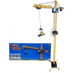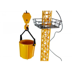 Der Kran dreht sich und senkt einen Haken am Seil ab, an dem verschiedene Gegenstände befestigt werden können. Enthält einen Bauhelm für Kinder!