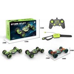 Storm Stunt ist ein leistungsstarkes, ferngesteuertes Stunt-Auto, das für aktives und dynamisches Fahren entwickelt wurde. Dank seines Allradantriebs (4WD) und seiner speziellen Konstruktion überwindet es mühelos Hindernisse, dreht sich um 360°, vollführt Überschläge und fährt in beide Richtungen.