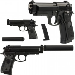Ein hochwertiges, federgelagertes Metallgewehr, das 6-mm-Kunststoffkugeln verschießt. Diese Pistole ist von unvergleichlich hoher Qualität, mit einem stoßfesten Metallgehäuse und einem hochwertig verarbeiteten Innenmechanismus, der Ihnen lange Freude an der Waffe bereiten wird.