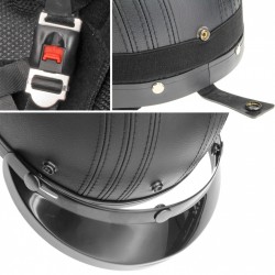 Stylischer Motorradhelm im Retro-Stil mit offenem Visier. Schnellverschluss.