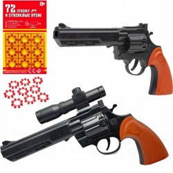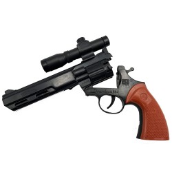 Funktionsprinzip: Das rote Magazin wird in die Trommel eingeführt; beim Betätigen des Abzugs ist ein Schuss zu hören und Rauch entsteht. Der Abzug kann vollständig durchgezogen werden, wodurch bis zu acht Schüsse abgegeben werden können.