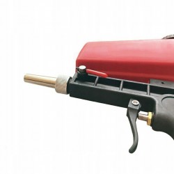 Die Pistole verfügt über ein Ventil, das die Sandzufuhr absperrt und so ein versehentliches Austreten von Sand verhindert, wenn die Pistole nicht verwendet wird.