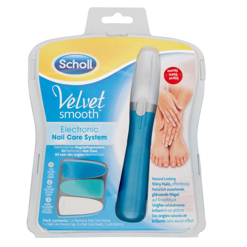 Das elektronische Nagelpflegesystem Scholl Velvet Smooth wurde für natürlich glänzende und gesund aussehende Nägel entwickelt. Mit diesem System können Sie Ihre Nägel einfach und schnell formen, polieren und glätten und ihnen so ein professionelles Aussehen verleihen.