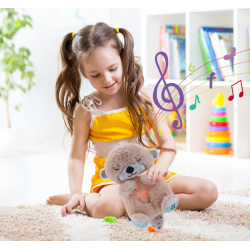 Das Spielzeug spielt 10 Minuten lang beruhigende Musik und andere Geräusche (wie Herzschläge, süßes Schnarchen usw.) und leuchtet in einem sanften Licht.