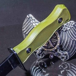 Die beidseitig geschliffene Klinge mit Speerspitzenprofil ist aus hochwertigem rostfreiem Stahl vom Typ 440 gefertigt.