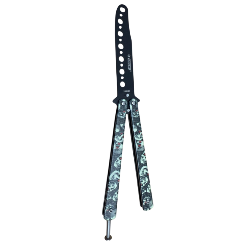 Trainingsmesser Butterfly ohne Klinge 22cm - Grey Skull