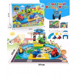 Ein interaktives Spielset mit beliebten Figuren aus dem Animationsfilm „Der blaue Traktor“. Das Set enthält eine bunte Rennstrecke, Straßenschilder, Tore, Brücken und Spielzeugtraktoren. Kinder können ihre eigenen Strecken gestalten, die Fahrzeuge bewegen, Rollenspiele spielen und ihre motorischen Fähigkeiten entwickeln.